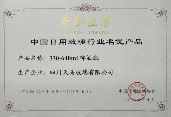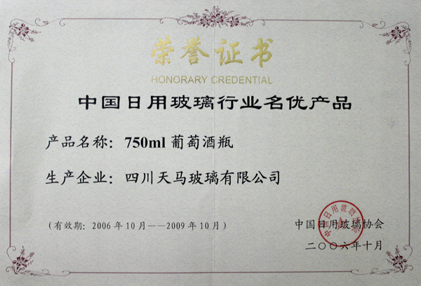 中國日用玻璃行業名優產品-葡萄酒瓶